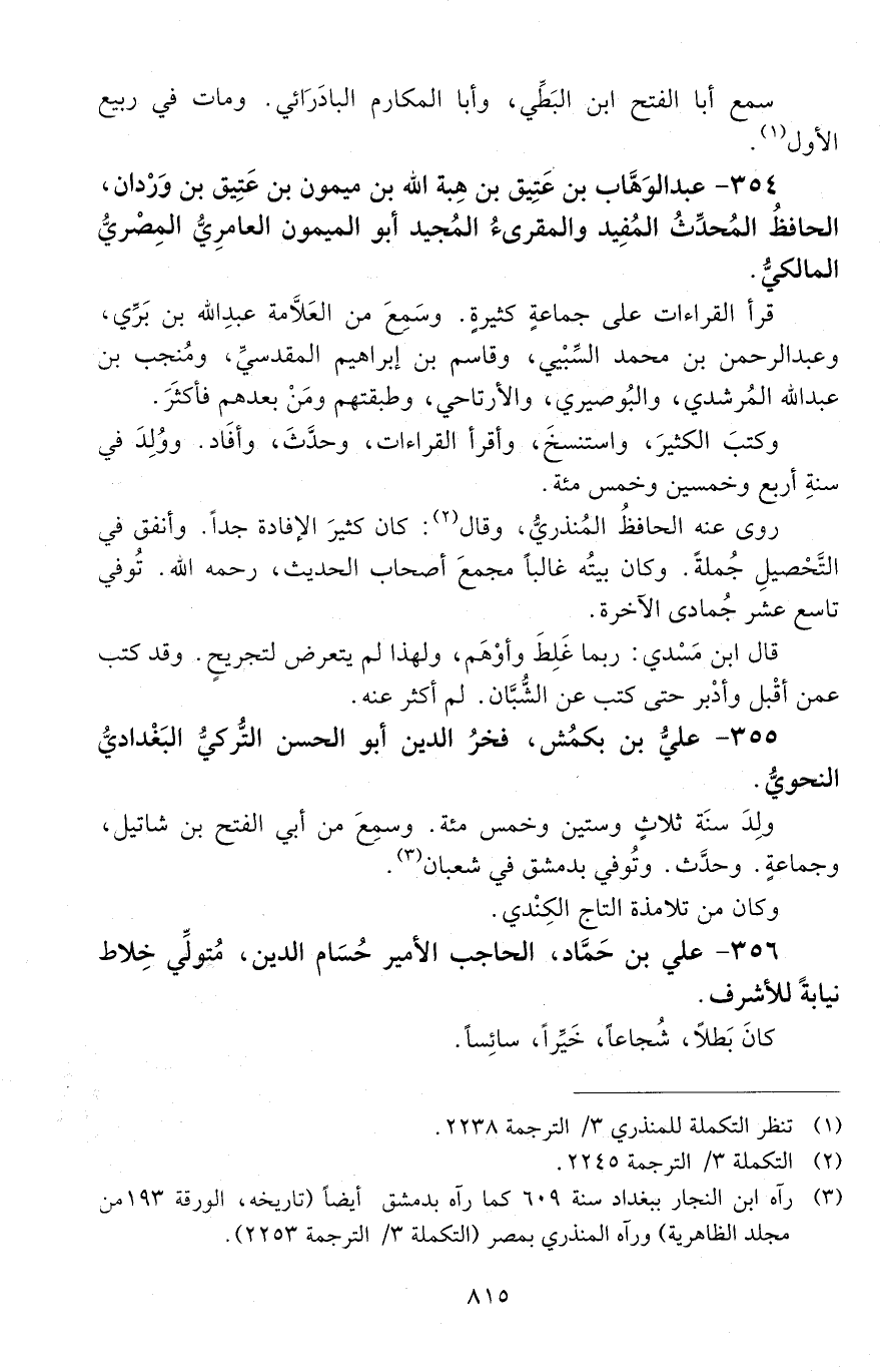 354 - عبد الوَهَّاب بن عَتِيق بْن هِبَة الله بْن ميمون بْن عَتِيق بن وَرْدان، الحافظُ المُحدِّث المُفِيدُ، والمقرئ المُجيد أبو الميمون العامرِيُّ المِصْريّ المالكيُّ. [المتوفى: 626 هـ]
