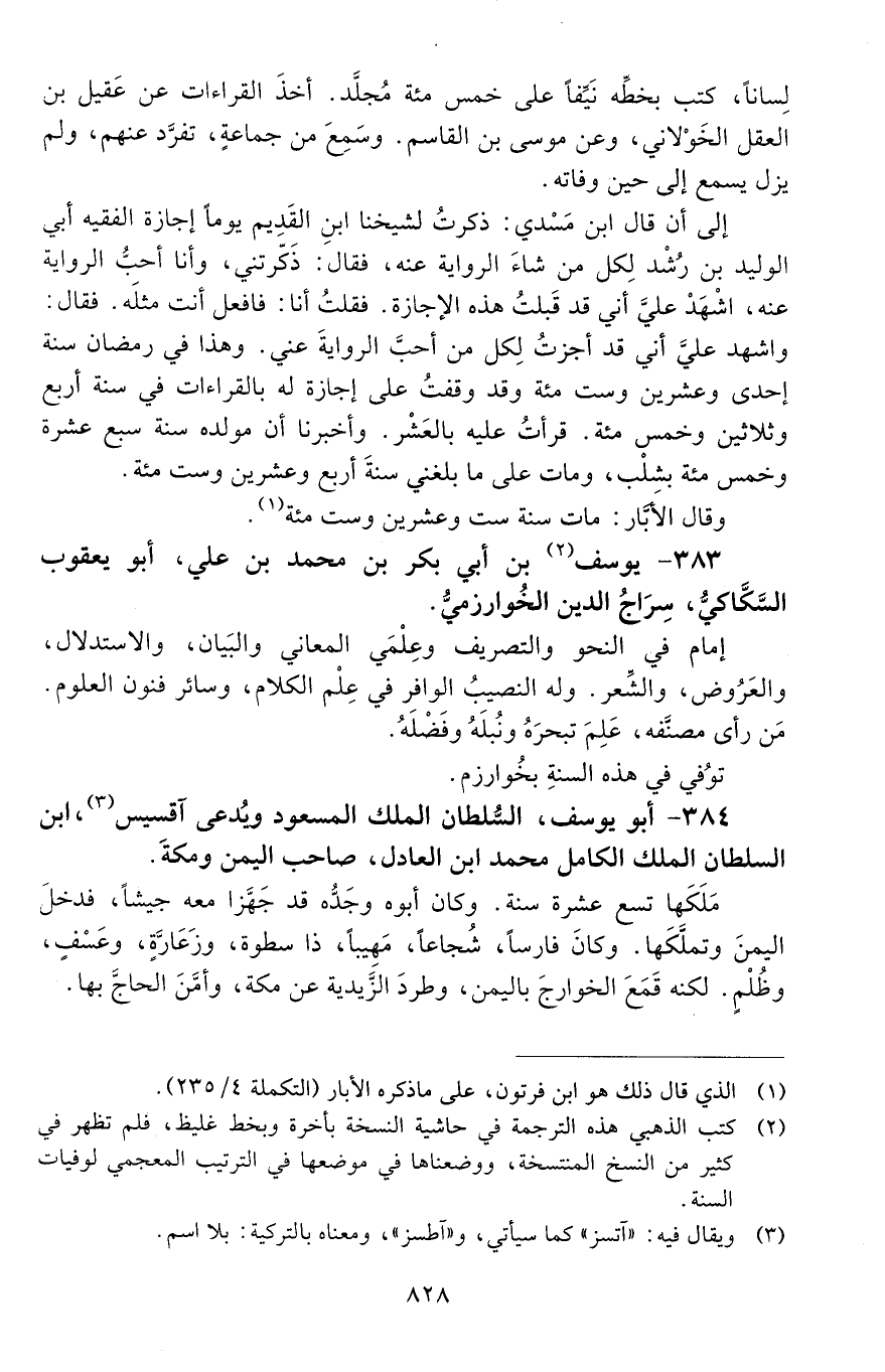 383 - يوسُف بن أبي بكر بن محمد بن عليّ، أبو يعقوب السَّكَّاكيُّ، سراجُ الدِّين الخُوارزْميّ. [المتوفى: 626 هـ]