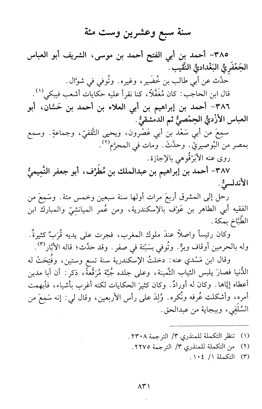 385 - أحمد بن أبي الفَتْح أحمد بن موسى، الشريف أبو العبّاس الْجَعْفَريُّ البَغْداديُّ النقيب. [المتوفى: 627 هـ]