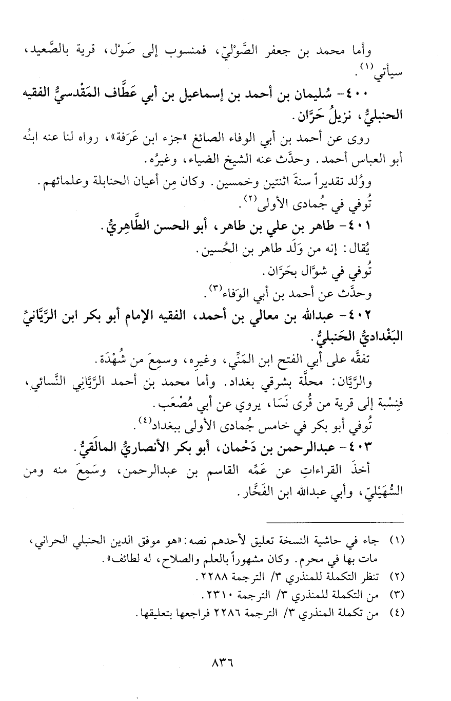 400 - سُلَيْمان بن أحمد بن إسماعيل بن أبي عَطَّاف، المَقْدِسيُّ الفقيه الحَنْبَليُّ [المتوفى: 627 هـ]