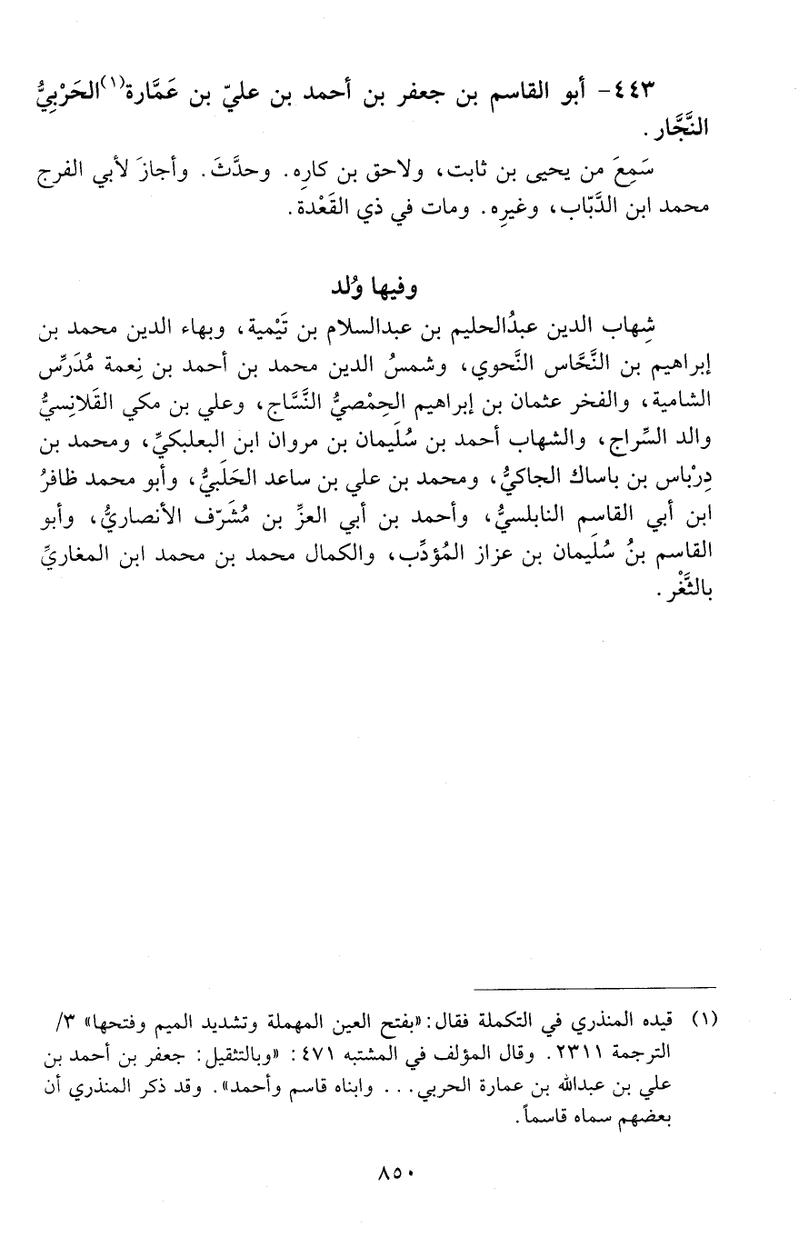 443 - أبو القاسم بن جعفر بن أحمد بن عليّ بن عَمَّارة الحَرْبيُّ النَّجّار. [المتوفى: 627 هـ]