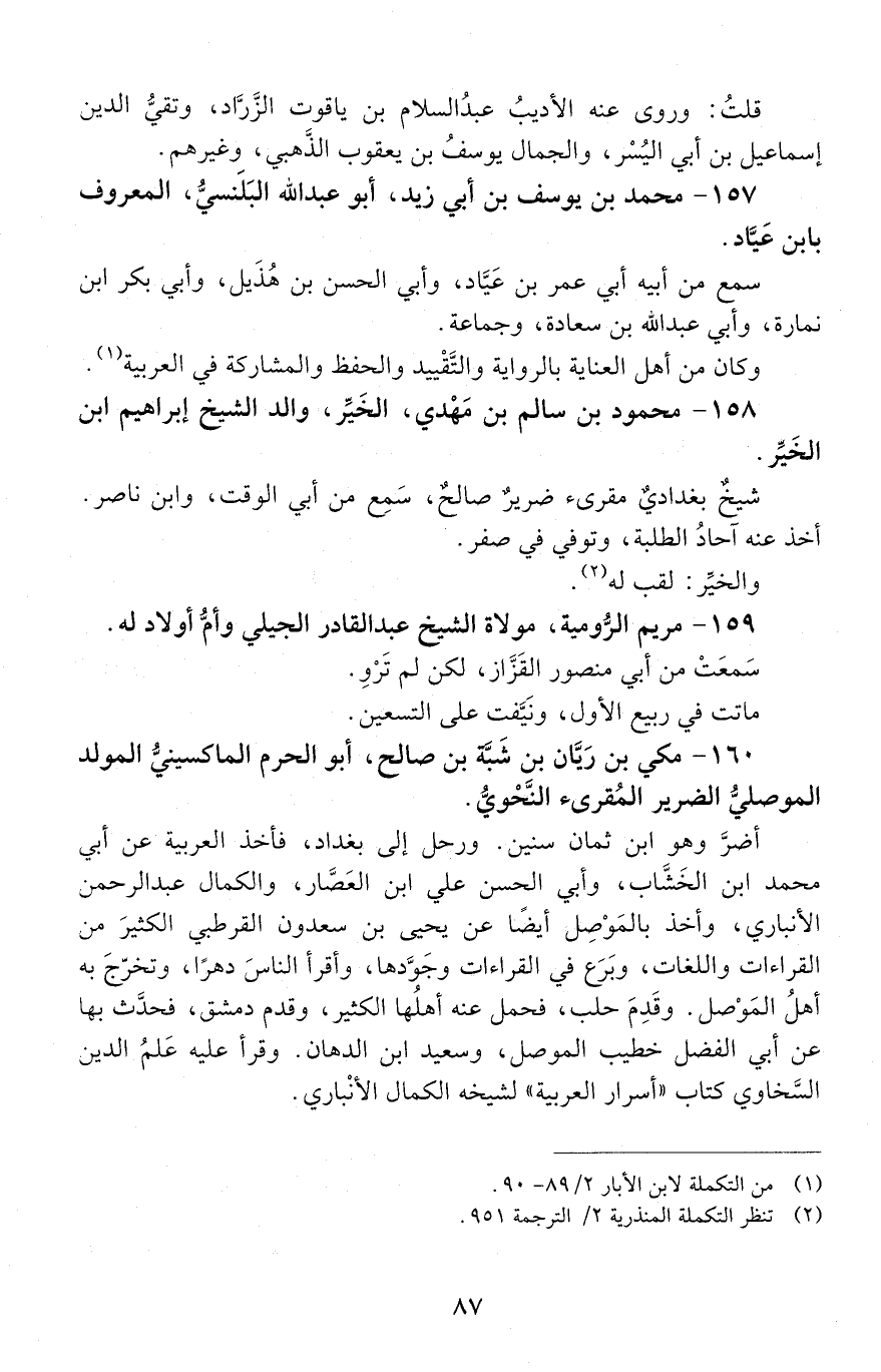 160 - مكّيّ بْن ريَّان بْن شبَّة بْن صالح، أَبُو الحَرَم الماكسينيُّ المولد الموصليُّ الضّرير المقرئ النَّحْويُّ. [المتوفى: 603 هـ]