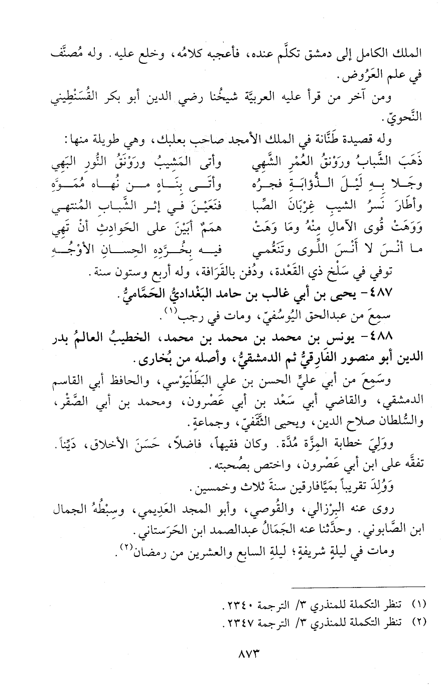 488 - يونسُ بن مُحَمَّد بن مُحَمَّد بن مُحَمَّد، الخطيبُ العالمُ بدر الدِّين أبو منصور الفَارقِيُّ ثمّ الدّمشقيُّ، [المتوفى: 628 هـ]