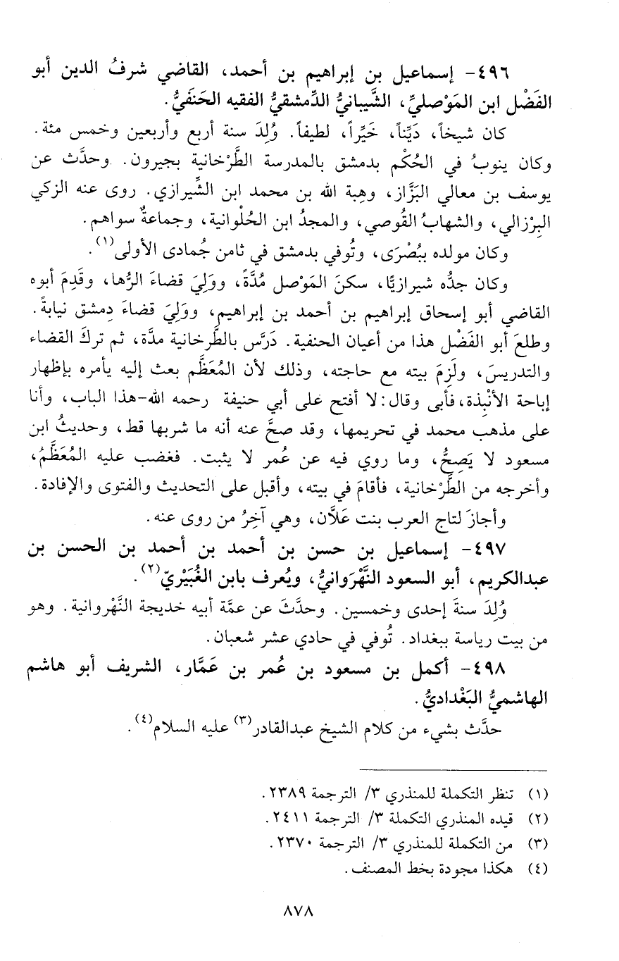498 - أَكمل بن مسعود بن عُمَر بن عَمّار، الشريف أبو هاشم الهاشِميُّ البَغْداديُّ. [المتوفى: 629 هـ]
