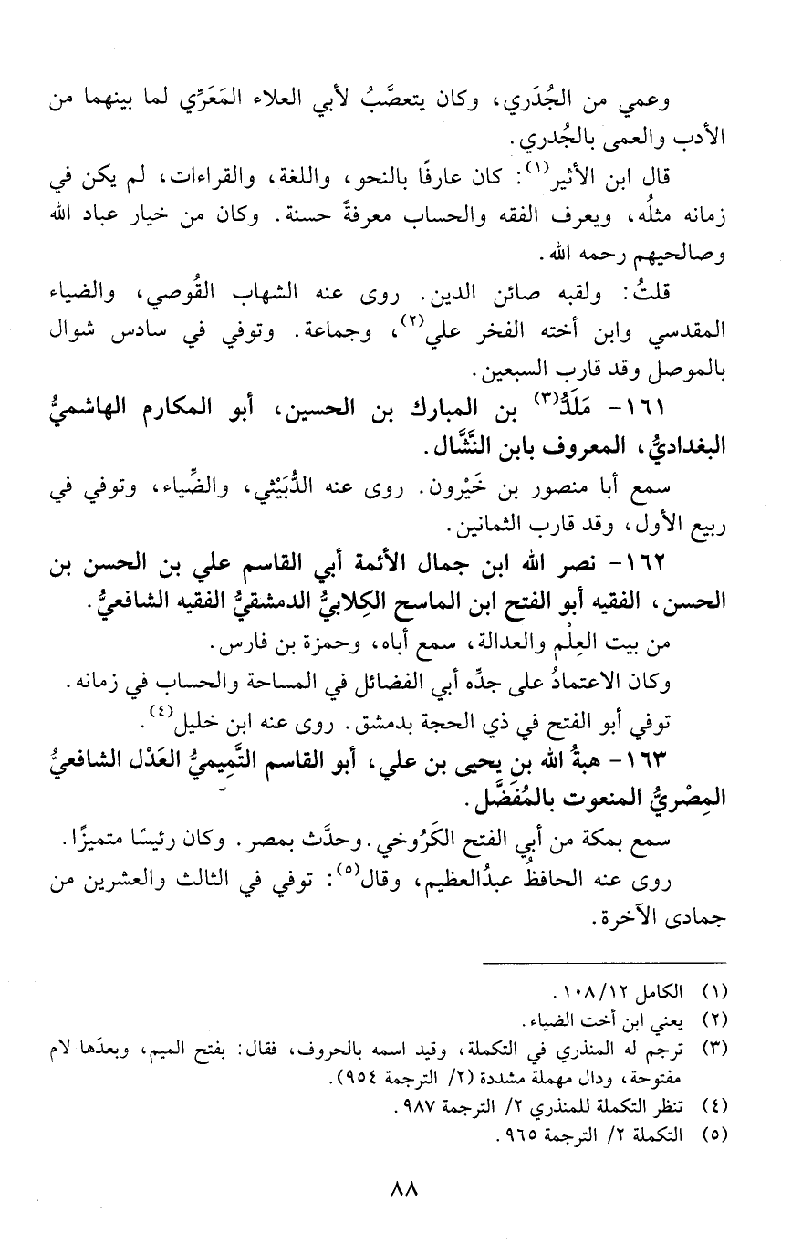 163 - هبَةُ الله بْن يَحْيَى بْن عليّ، أَبُو القَاسِم التَّميميُّ العَدْل الشافعيُّ المِصْريُّ المنعوت بالمُفَضَّل. [المتوفى: 603 هـ]