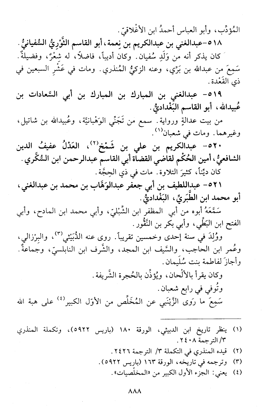 519 - عبد الغني بن المبارك بن المبارك بن أبي السعادت بن عُبَيْد الله، أبو القاسم البَغْداديُّ. [المتوفى: 629 هـ]