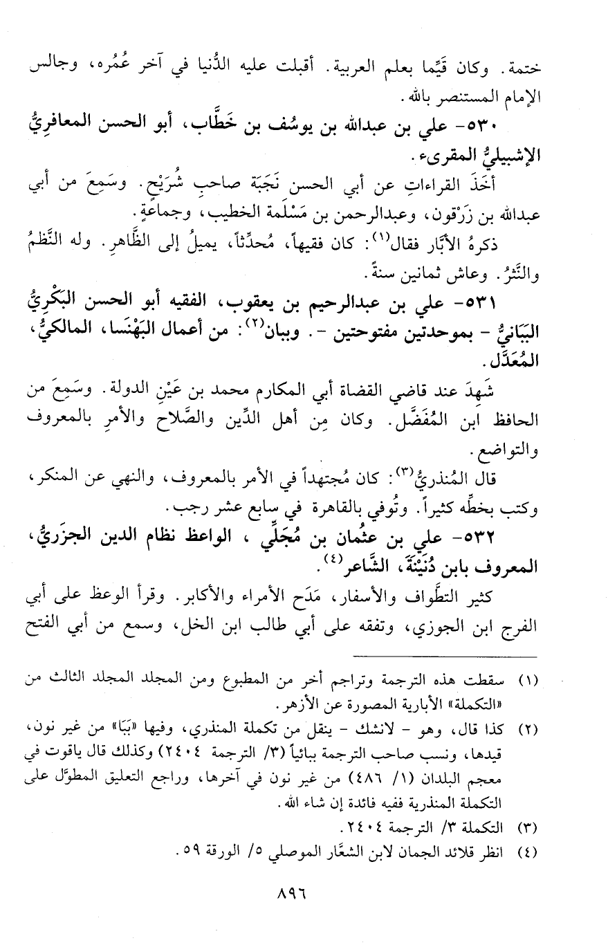 530 - عليُّ بن عبد الله بن يوسُف بن خطَّاب، أبو الحَسَن المُعَافِريُّ الإِشْبِيليّ الْمُقْرِئ. [المتوفى: 629 هـ]