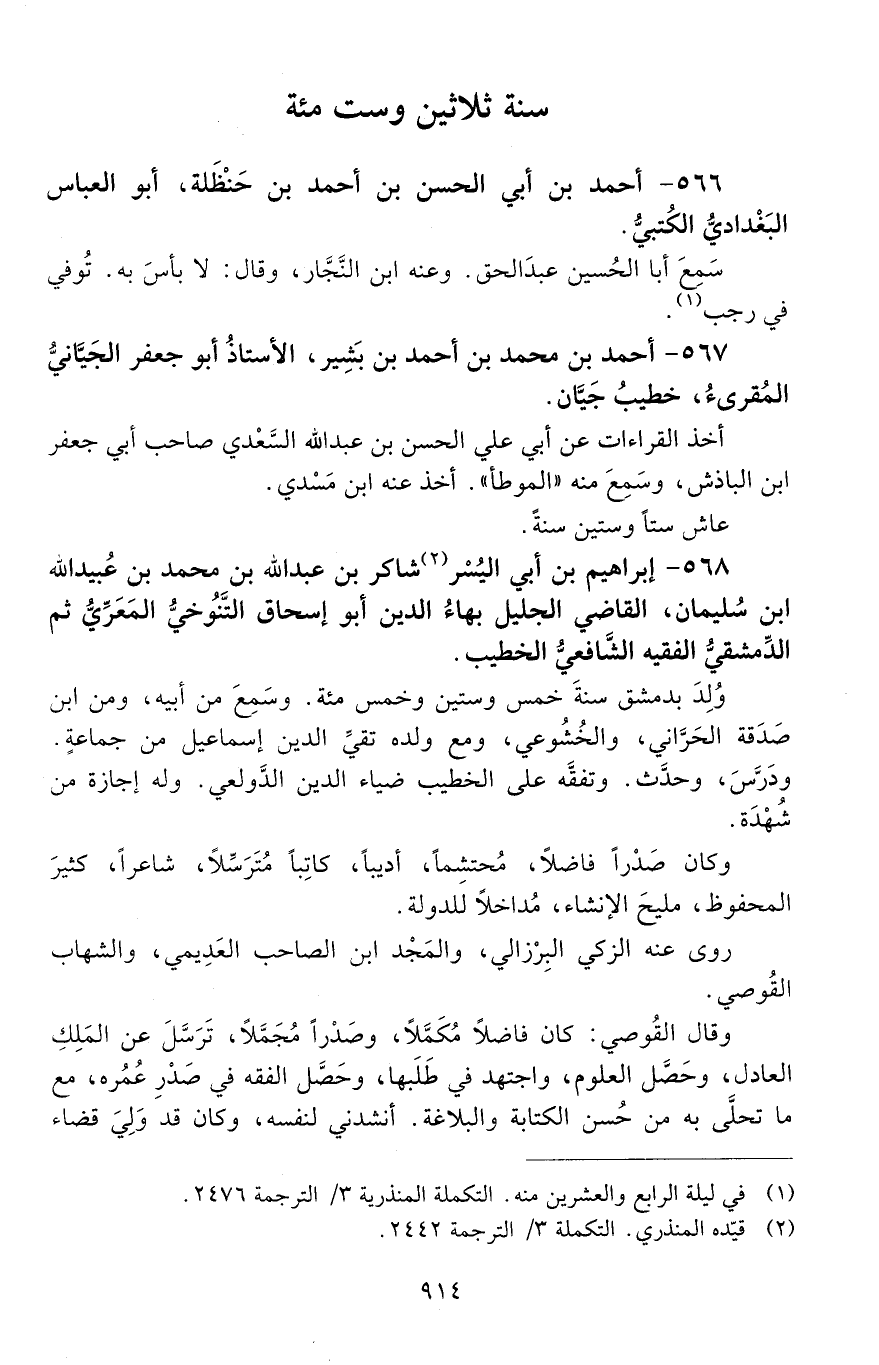566 - أحمد بن أبي الحَسَن بن أحمد بن حَنظلة، أبو العبّاس البَغْداديُّ الكُتْبِيُّ. [المتوفى: 630 هـ]