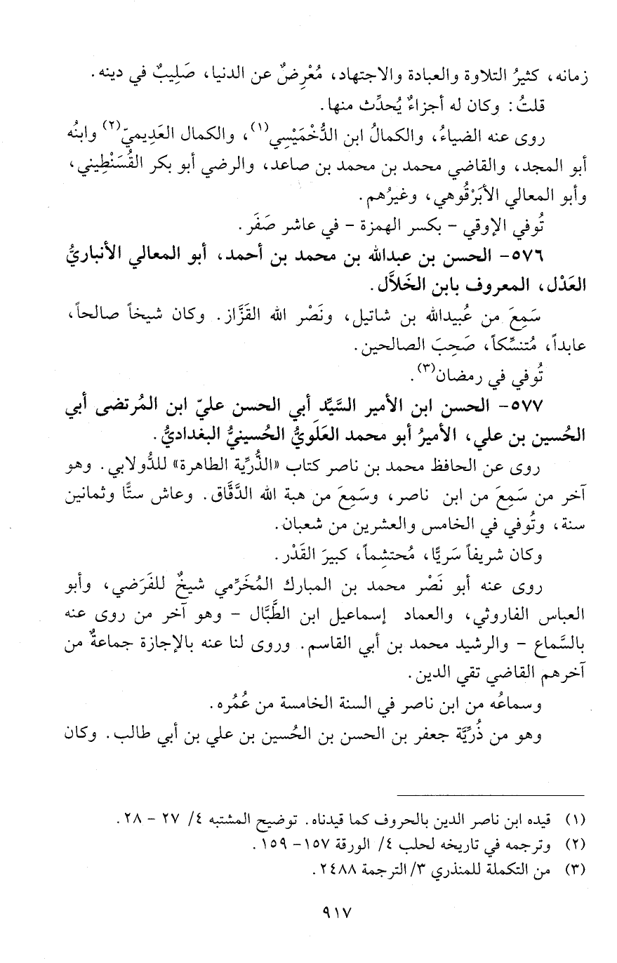 577 - الحَسَنُ ابن الأمير السيّد أبي الحَسَن عليّ بن المرتضى أبي الحُسَيْن بن عليّ، الأمير أبو مُحَمَّد العلويّ الحُسَيْني البَغْداديّ. [المتوفى: 630 هـ]