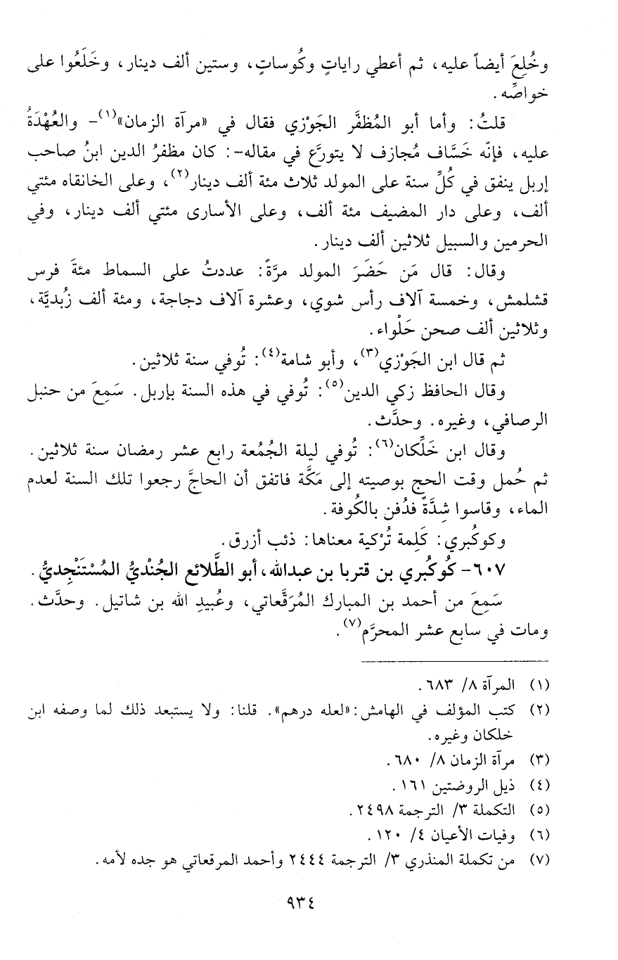 607 - كوكبريّ بن قتربا بن عبد الله، أبو الطلائع الجندي المستنجدي. [المتوفى: 630 هـ]