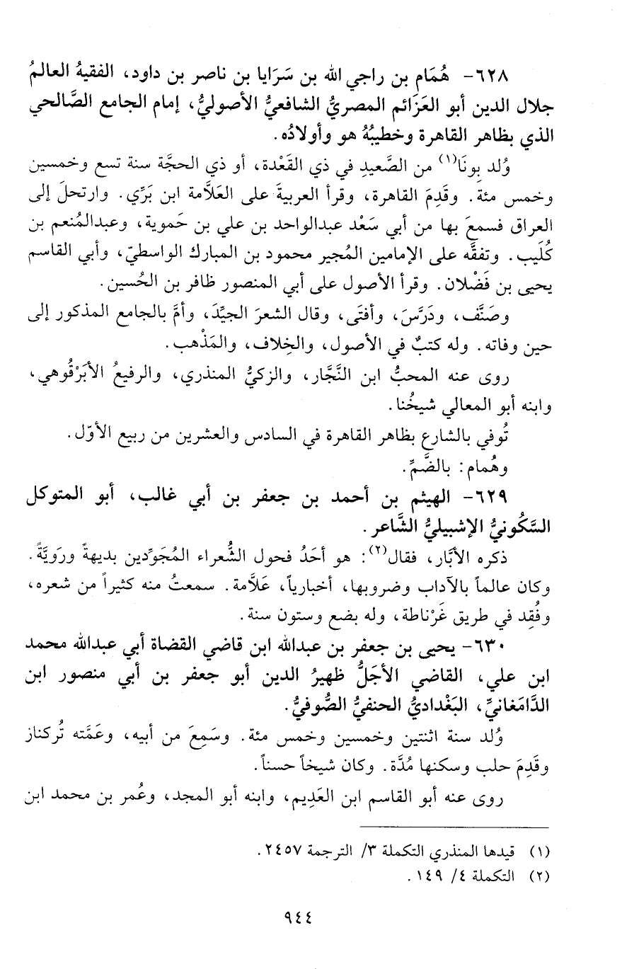 628 - همّام بن راجي الله بن سرايا بن ناصر بن داود، الفقيه العالم جلال الدِّين أبو العزائم المصريُّ الشّافعيُّ الأصوليّ، [المتوفى: 630 هـ]