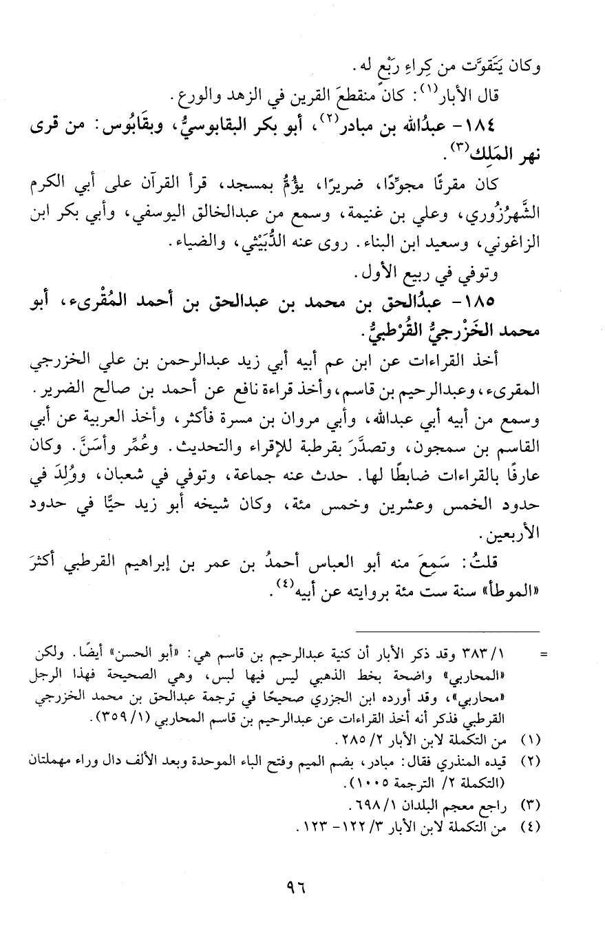 184 - عبدُ الله بنُ مُبادِر، أَبُو بَكْر البقابوسيّ، [المتوفى: 604 هـ]