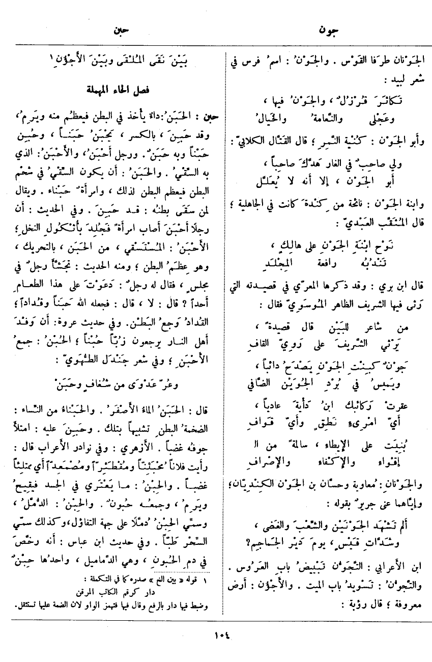 الجَوْنان طرَفا القَوْس. والجَوْنُ: اسمُ فَرْسٍ فِي شِعْرِ لَبِيدٍ: