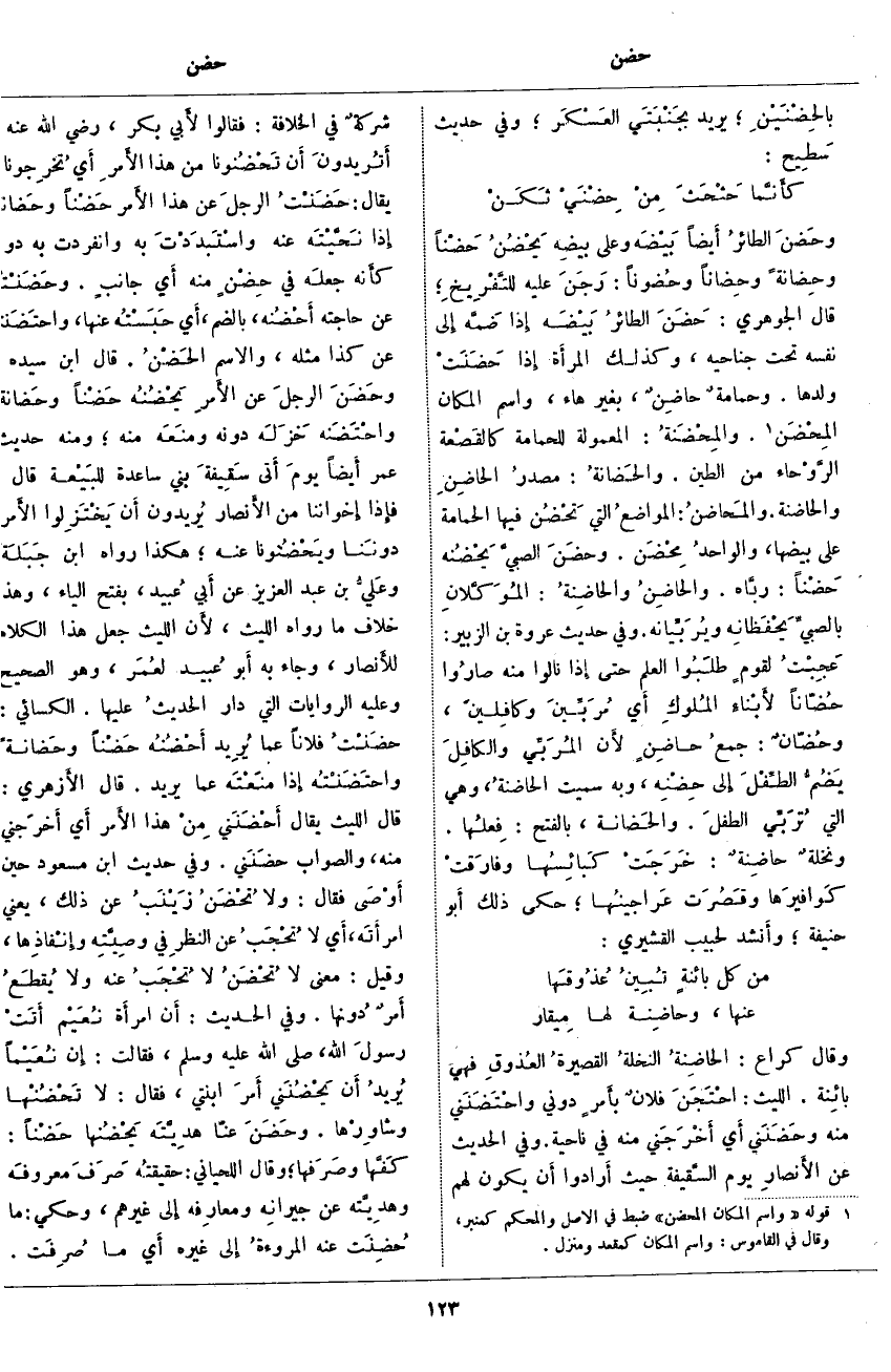 (1). قوله [واسم المكان المحضن] ضبط في الأَصل والمحكم كمنبر، وقال في القاموس: واسم المكان كمقعد ومنزل