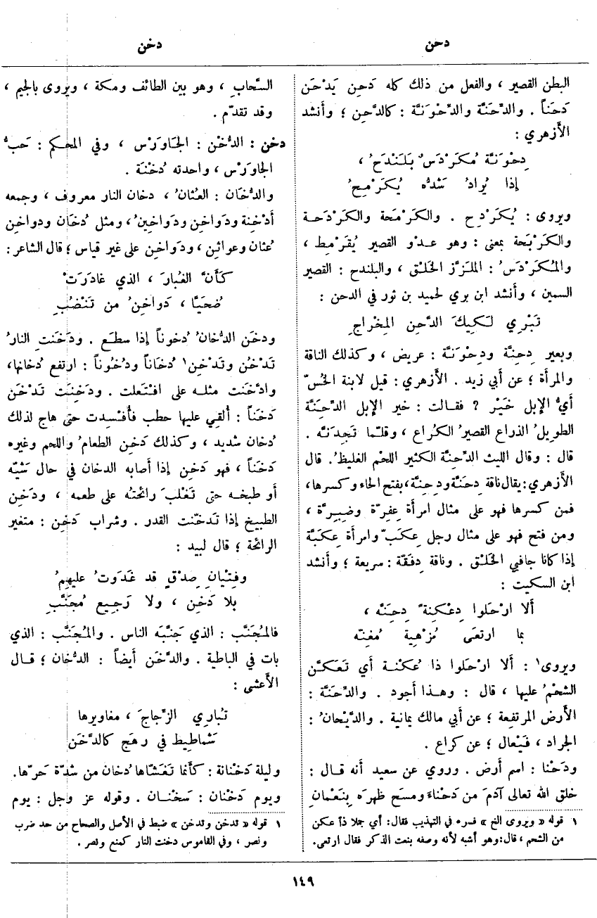 دخن: الدُّخْن: الجَاوَرْس، وَفِي الْمُحْكَمِ: حَبُّ الجاوَرْس، وَاحِدَتُهُ دُخْنَة. والدُّخَان: العُثانُ، دُخَانُ النَّارِ مَعْرُوفٌ، وَجَمْعُهُ أَدْخِنة ودَواخِن ودَواخِينُ، وَمِثْلُ دُخَان ودواخِن عُثان وعواثِن، ودَواخِن عَلَى غَيْرِ قِيَاسٍ؛ قَالَ الشَّاعِرُ: