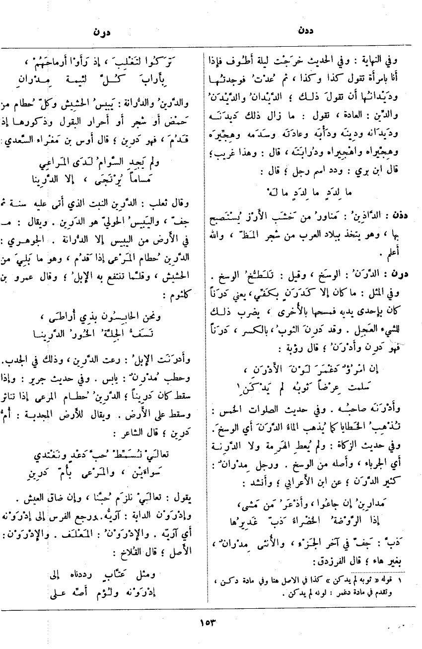 ؛ الدَّيْدانُ والدَّيْدَنُ والدِّين: الْعَادَةُ، تَقُولُ: مَا زَالَ ذَلِكَ دَيدَنَه ودَيدَانه ودِينَه ودأْبَه وعادَتَه وسَدَمه وهِجِّيرَه وهِجِّيراه واهْجِيراه ودُرابَتَه، قَالَ: وَهَذَا غَرِيبٌ؛ قَالَ ابْنُ بَرِّيٍّ: وَدَدَ اسْمُ رَجُلٍ؛ قَالَ: