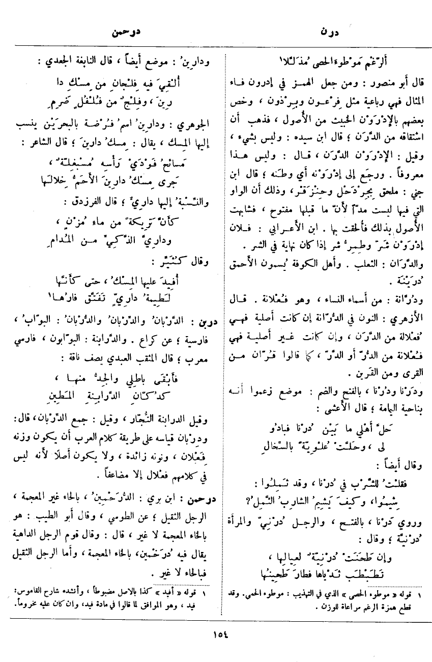 درحمن: ابْنُ بَرِّيٍّ: الدُّرَحْمِينُ، بِالْحَاءِ غَيْرِ الْمُعْجَمَةِ، الرَّجُلُ الثَّقِيلُ؛ عَنِ الطُّوسِيِّ، وَقَالَ أَبو الطِّيبِ: هُوَ بِالْخَاءِ الْمُعْجَمَةِ لَا غَيْرُ، قَالَ: وَقَالَ قَوْمٌ الرَّجُلُ الدَّاهِيَةُ يُقَالُ فِيهِ دُرَخْمين، بِالْخَاءِ الْمُعْجَمَةِ، وأَما الرَّجُلُ الثَّقِيلُ فبالحاء لا غير.