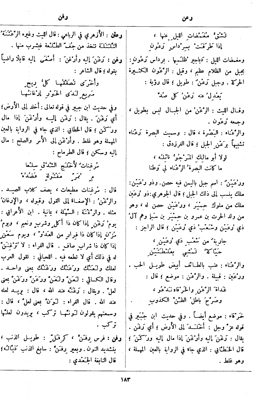 قَالَ: مُرغِنات مُطِيعَاتٍ، يَصِفُ كِلَابَ الصَّيْدِ. والرَّغْنُ: الإِصغاءُ إِلى الْقَوْلِ وَقَبُولُهُ، والإِرغانُ مِثْلُهُ. والرَّغْنَة: السَّهْلة، يَمَانِيَّةٌ. ابْنُ الأَعرابي: يومُ رَغْنٍ إِذا كَانَ ذَا أَكلٍ وشربٍ وَنَعِيمٍ، ويومُ مُزْنٍ إِذا كَانَ ذَا فِرارٍ مِنَ العَدُوّ، وَيَوْمٌ سَعْنٍ إِذا كَانَ ذَا شرابٍ صافٍ. قَالَ الْفَرَّاءُ: لَا تُرْغِنَنَّ لَهُ فِي ذَلِكَ أَي لَا تُطِعْهُ فِيهِ. اللِّحْيَانِيُّ: تقول العرب لعلك لَعَنَّك ورَعَنَّك ورَغَنَّك بِمَعْنًى وَاحِدٍ. وَقَالَ الْكِسَائِيُّ: لَعَنَّ ولَغَنَّ ورَعَنَّ ورَغَنَّ بِمَعْنَى لعلَّ. ويقال: رَعَنَّه عِنْدَ اللَّهِ، قَالَ: يُرِيدُ لَعَلَّهُ عِنْدَ اللَّهِ. قَالَ الْفَرَّاءُ: لَوَنَّ بِمَعْنَى لعلَّ، قَالَ وَسَمِعْتُهُمْ يَقُولُونَ لَونَّها تَرْكَبُ يُرِيدُونَ لعلَّها تَرْكَبُ.