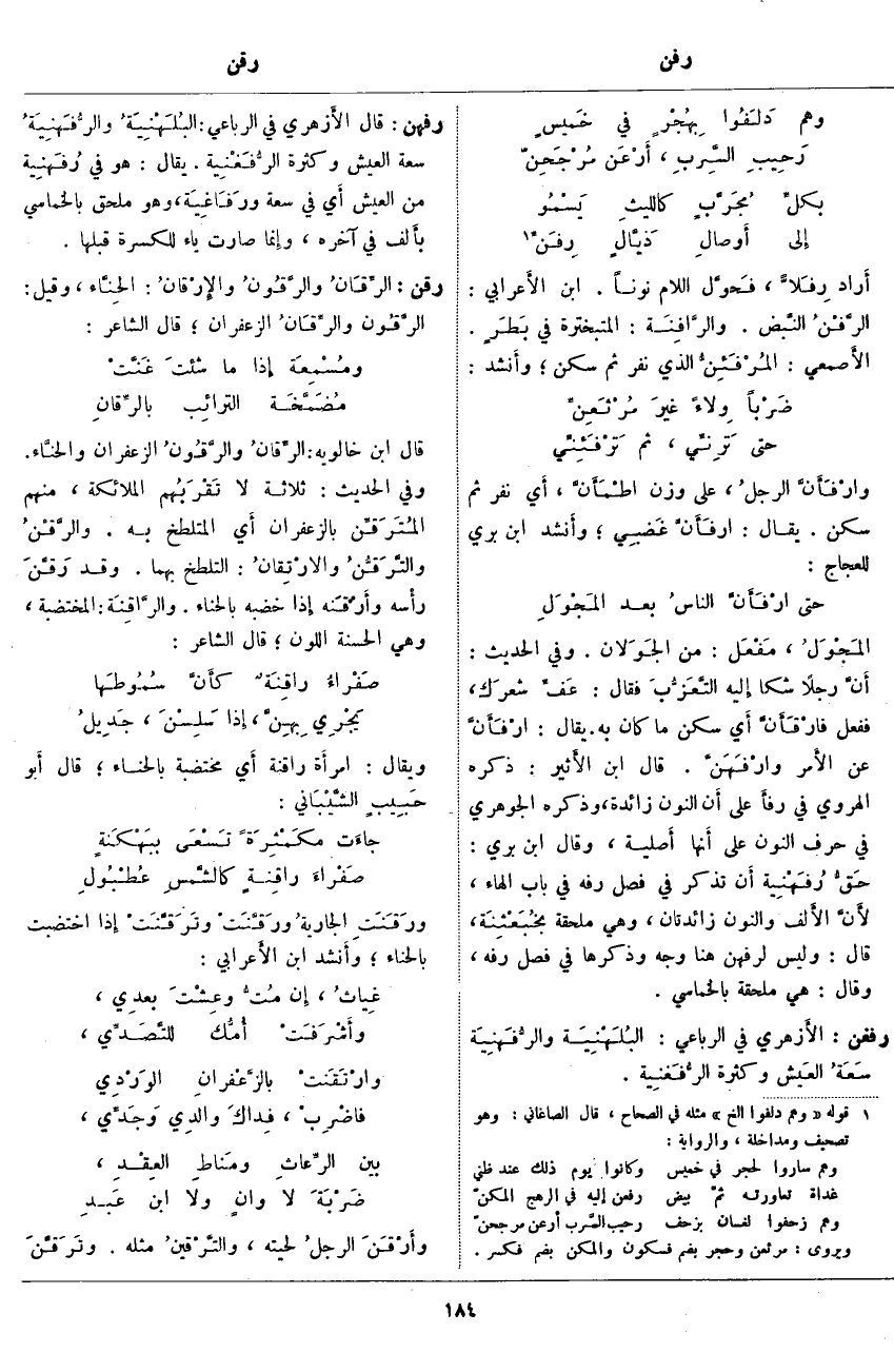 رقن: الرِّقَانُ والرَّقُونُ والإِرْقانُ: الحِنَّاء، وَقِيلَ: الرَّقُون والرِّقَانُ الزَّعْفَرَانُ؛ قَالَ الشَّاعِرُ: