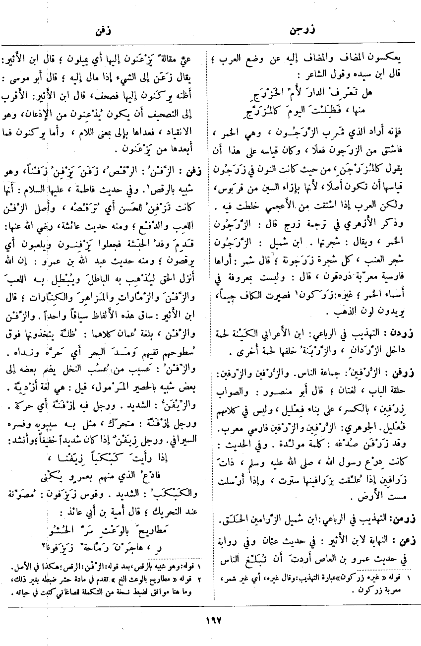 زفن: الزَّفْنُ: الرَّقْصُ، زَفَنَ يَزْفِنُ زَفْناً، وَهُوَ شَبِيهٌ بِالرَّقْصِ «5». وَفِي حَدِيثِ