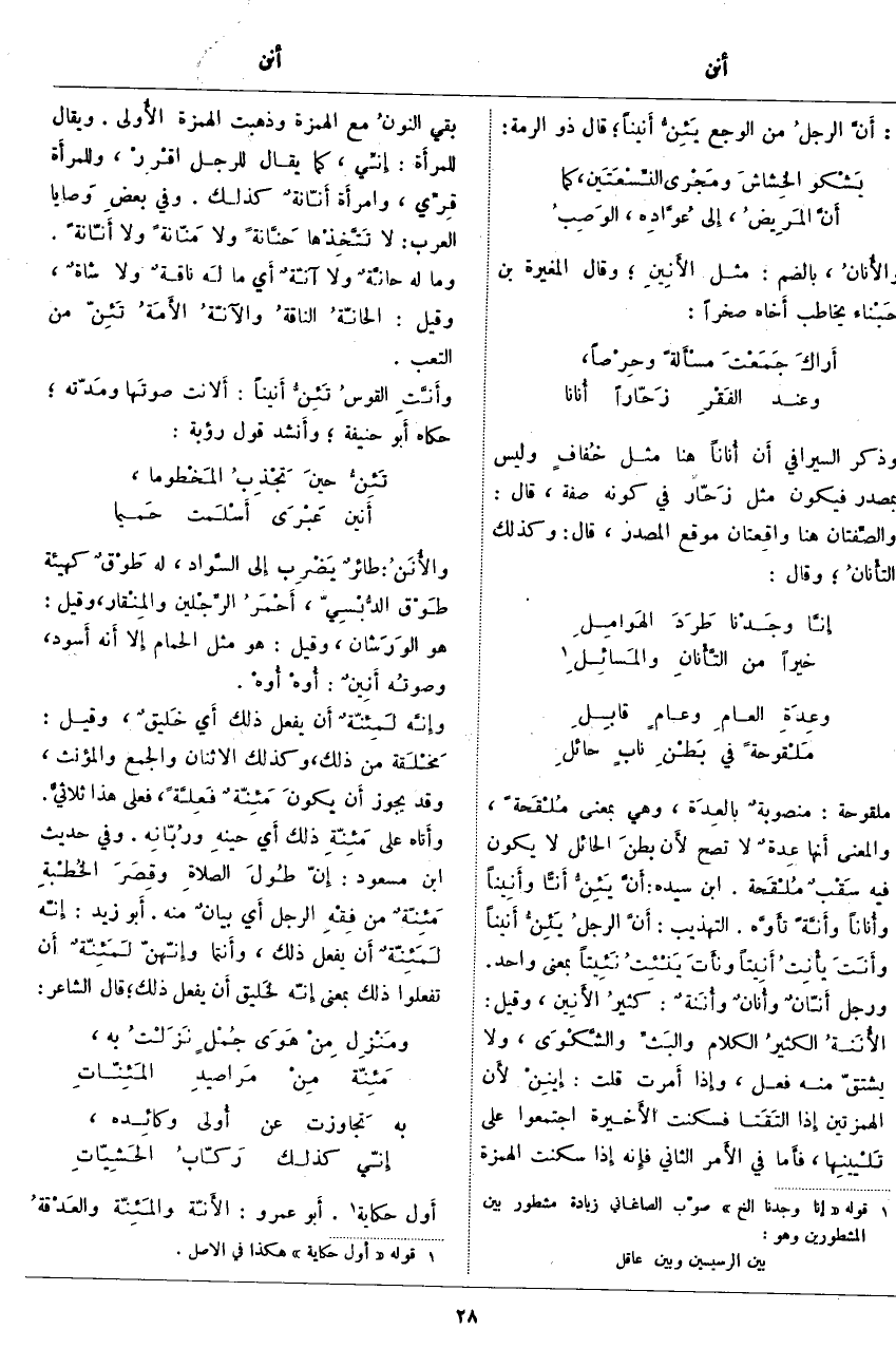 أنن: أَنَّ الرجلُ مِنَ الْوَجَعِ يَئِنُّ أَنيناً، قَالَ ذُو الرُّمَّةِ: