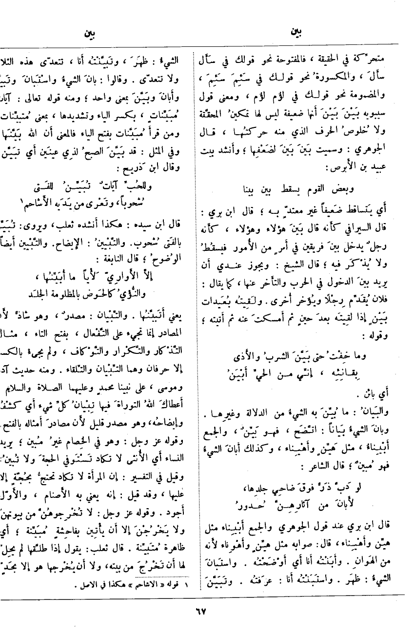 قَالَ ابْنُ بَرِّيٍّ عِنْدَ قَوْلِ الْجَوْهَرِيِّ وَالْجَمْعُ أَبْيِناء مِثْلُ هيِّن وأَهْيِناء، قَالَ: صَوَابُهُ مِثْلُ هيِّنٍ وأَهْوِناء لأَنه مِنَ الهَوانِ. وأَبَنْتُه أَنا أَي أَوْضَحْتُه. واستَبانَ الشيءُ: ظهَر. واستَبَنْتُه أَنا: عرَفتُه. وتَبَيَّنَ الشيءُ: ظَهَر، وتَبيَّنْتهُ أَنا، تتعدَّى هَذِهِ الثلاثةُ وَلَا تَتَعَدَّى. وَقَالُوا: بانَ الشيءُ واسْتَبانَ وتَبيَّن وأَبانَ وبَيَّنَ بِمَعْنًى وَاحِدٍ؛ وَمِنْهُ قَوْلُهُ تَعَالَى: آياتٍ مُبَيِّناتٍ*