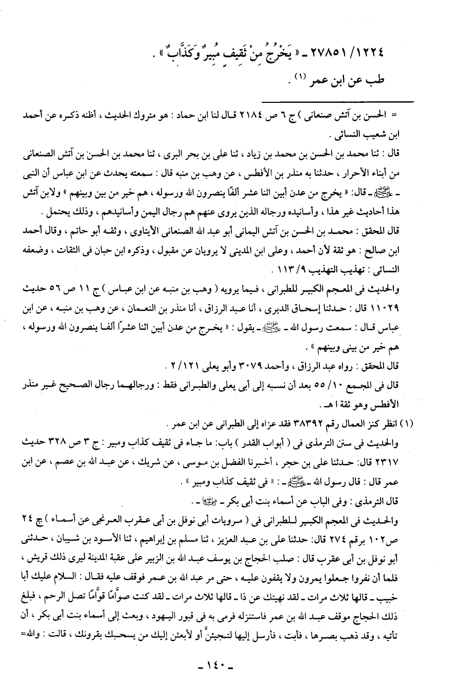 1224/ 27851 - "يَخْرُجُ مِنْ ثَقِيفٍ مُبِيرٌ وَكَذَّابٌ".