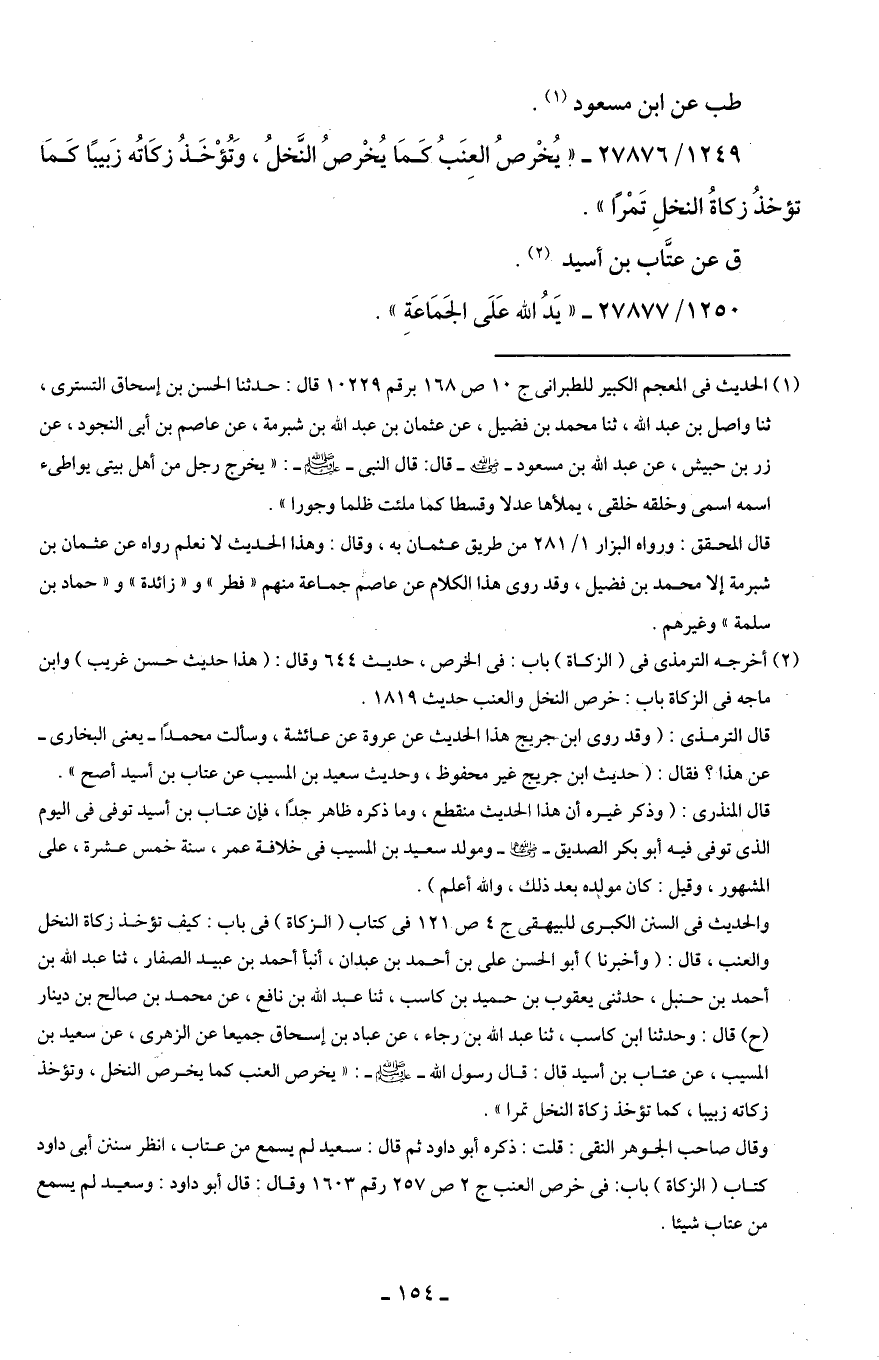 1249/ 27876 - "يُخْرصُ العِنَبُ كَمَا يُخْرصُ النَّخلُ، وَتُؤْخَذُ زكَاتُه زَبيبًا كَمَا تؤخذُ زكاةُ النخلِ تَمْرًا".
