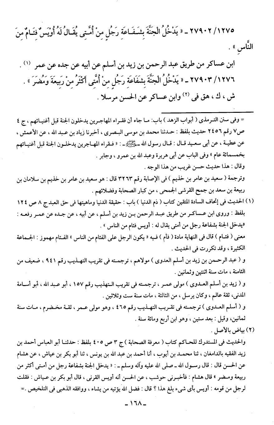 1275/ 27902 - "يَدْخُلُ الْجَنَّةَ بِشَفَاعَةِ رَجُلٍ مِنْ أُمَّتِى يُقَالُ لَهُ أُوْيَسٌ فِئَامٌ مِنَ النَّاسِ".