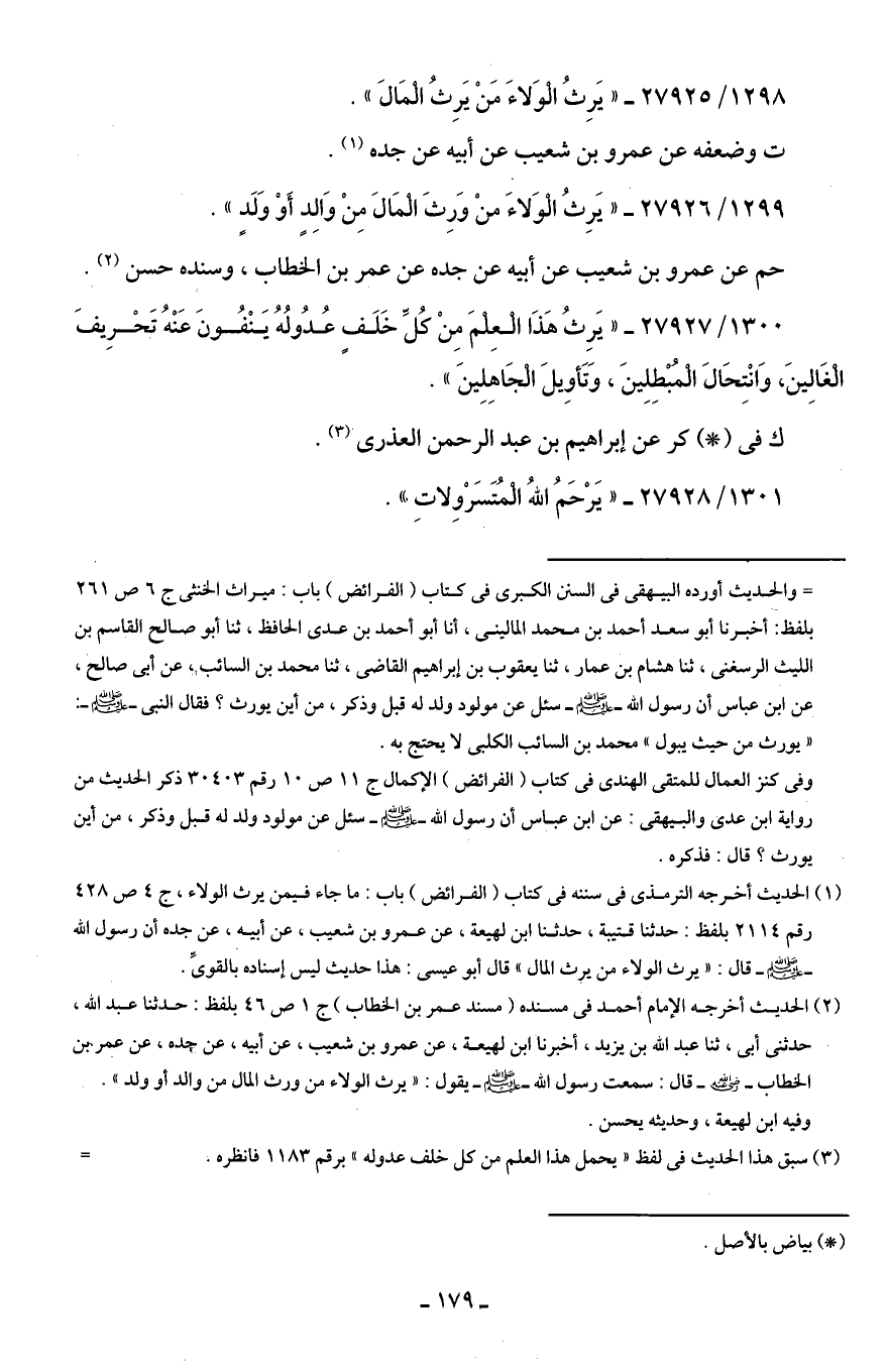 1298/ 27925 - "يَرِثُ الْوَلاءَ مَنْ يَرِثُ الْمَالَ".