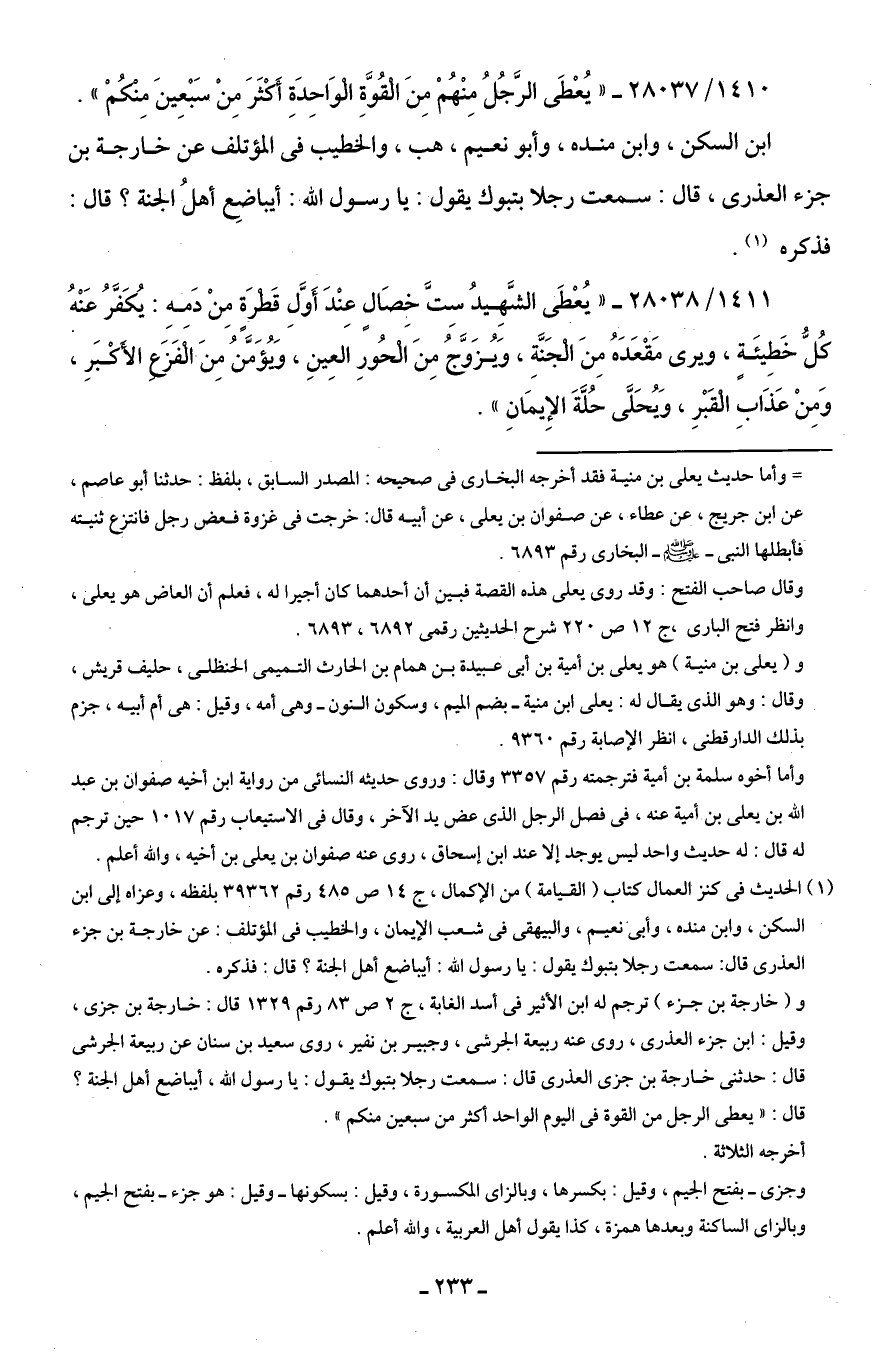 1410/ 28037 - "يُعْطَى الرَّجُلُ مِنْهُمْ مِنَ الْقُوَّةِ الْوَاحِدَةِ أَكْثَرَ مِنْ سَبعِينَ مِنكُمْ".