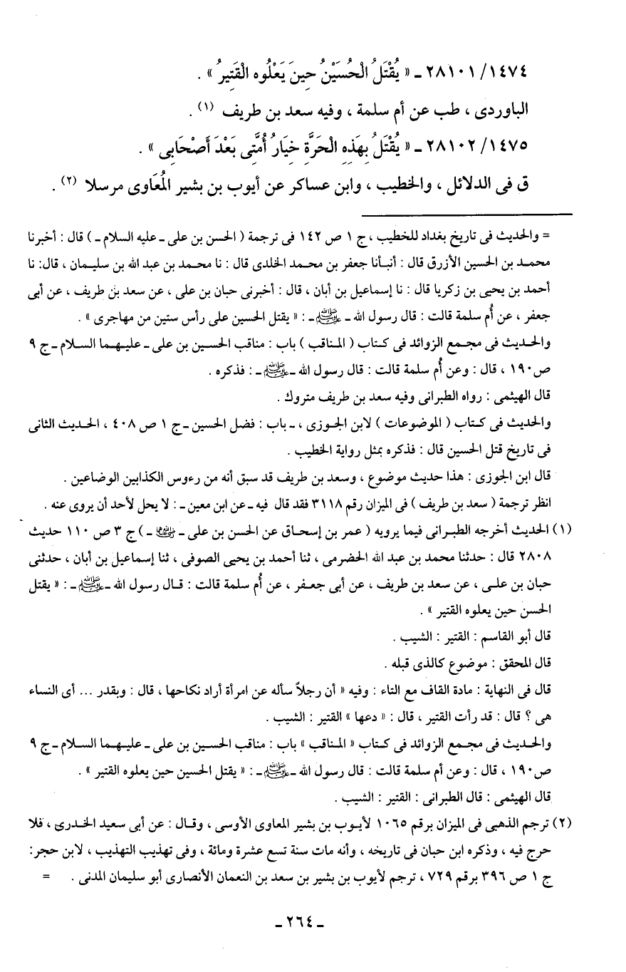 1474/ 28101 - "يُقْتَلُ الْحُسَيْنُ حِينَ يَعْلُوه الْقَتِيرُ".