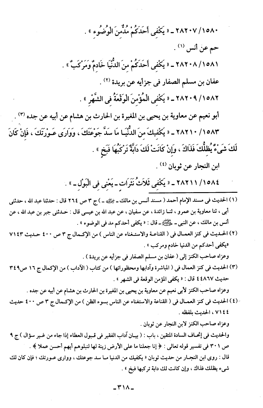 1581/ 28208 - "يَكْفِى أَحَدَكُمْ مِنَ الدُّنْيَا خَادِمٌ وَمَرْكَبٌ".