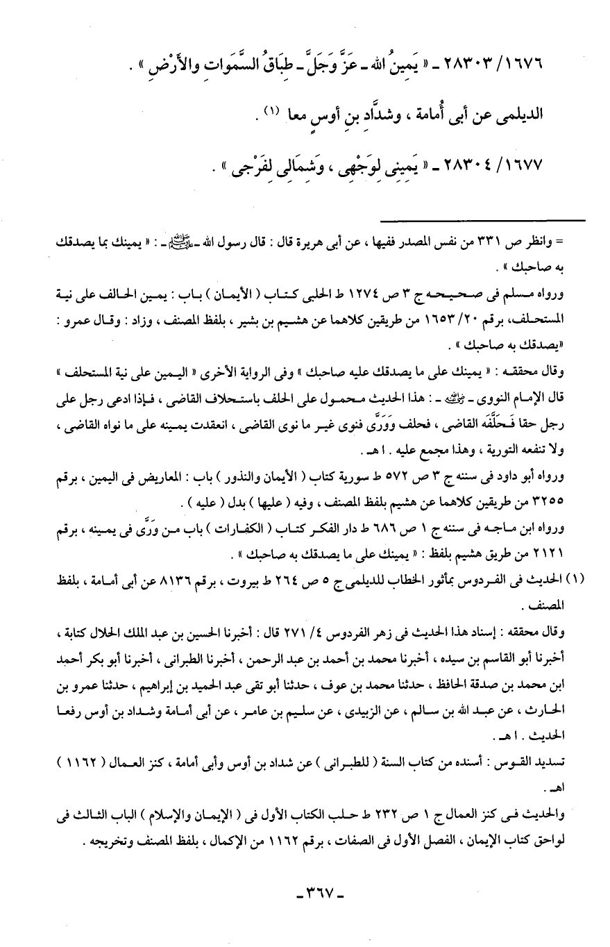 1676/ 28303 - "يَمِينُ اللَّه -عَزَّ وَجَلَّ- طِبَاقُ السَّمَواتِ والأَرْضِ".