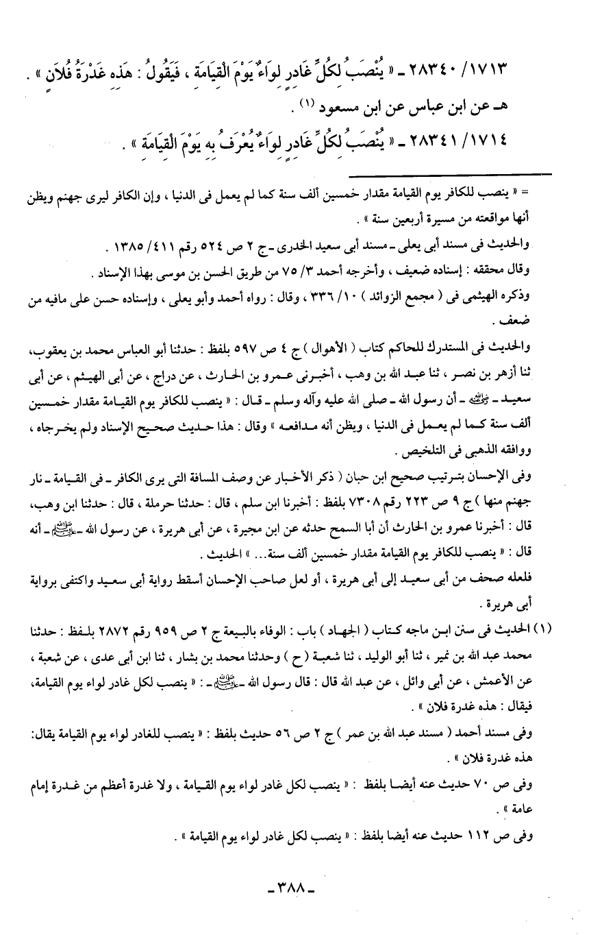 1714/ 28341 - "يُنْصَبُ لِكُلِّ غَادِرٍ لِوَاءٌ يُعْرَفُ بِهِ يَوْمَ الْقِيَامَةِ".