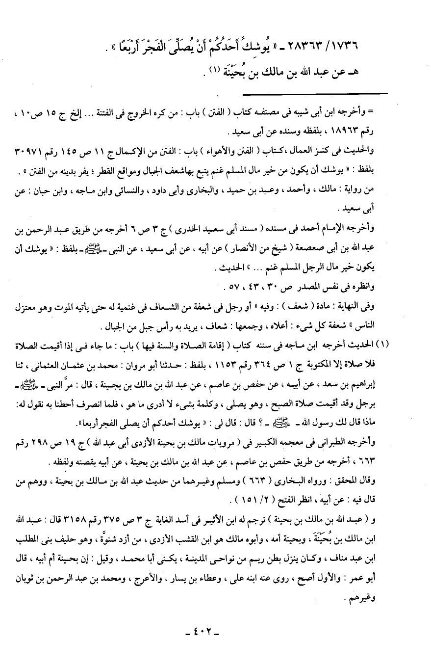 1736/ 28363 - "يُوشِكُ أَحَدُكُمْ أَنْ يُصَلِّى الْفَجْرَ أَرْبَعًا".