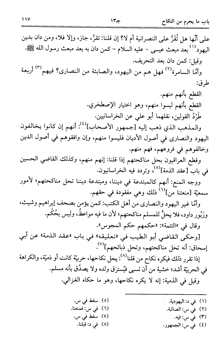 والمذهب الذي ذهب إليه [جمهور الأصحاب]: أنهم إن كانوا يخالفون اليهود والنصارى في أصول الأديان فليسوا منهم، وإن وافقوهم في أصول الدين وخالفوهم في فروعهم، فهم منهم.