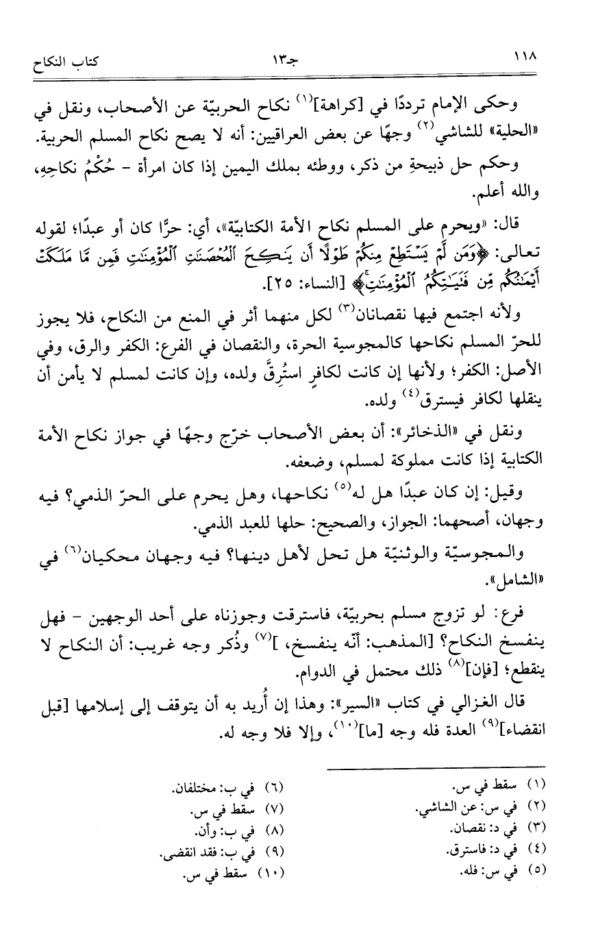 وقيل: إن كان عبداً هل له نكاحها، وهل يحرم على الحرّ الذمي؟ فيه وجهان، أصحهما: الجواز، والصحيح: حلها للعبد الذمي.