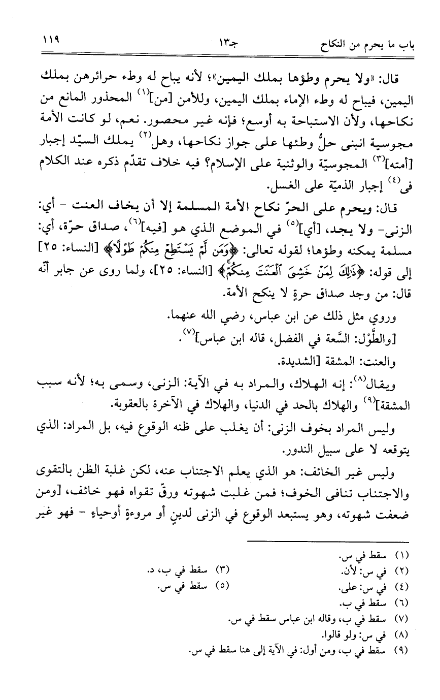 [والطَّوْل: السَّعة في الفضل، قاله ابن عباس].