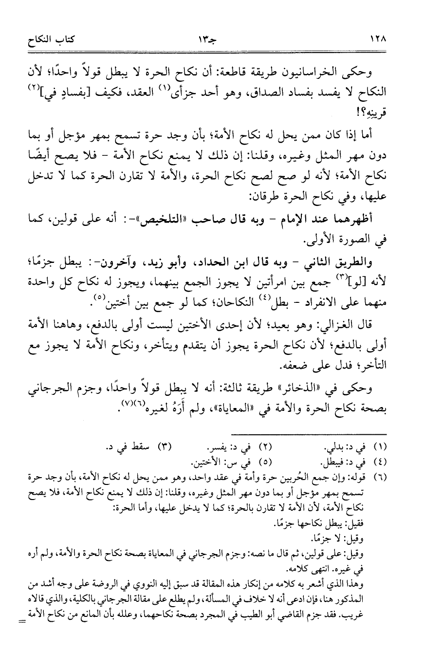وحكى الخراسانيون طريقة قاطعة: أن نكاح الحرة لا يبطل قولاً واحداً؛ لأن النكاح لا يفسد بفساد الصداق، وهو أحد جزأي العقد، فكيف [فسادٍ في] قرينِهِ؟!
