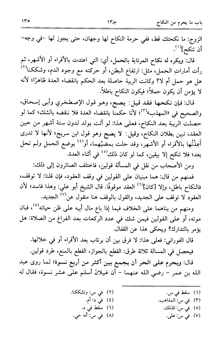قال: ويحرم على الحر أن يجمع بين أكثر من أربع نسوة؛ لما روى عبد الله بن عمر- رضي الله عنهما- أن غيلانَ أسلم على عشر نسوة، فقال له
