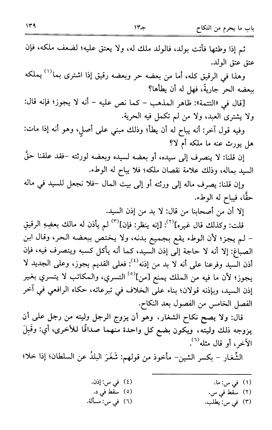قلت: وكذلك قال غيره]: [إنه ينظر: فإن] لم يأذن له مالك بعضِهِ الرقيقِ- لم يجز؛ لأن الوطء يقع بجميع بدنه، ولا يختص ببعض الحر، وقال ابن الصباغ: إلا أنه لا حاجة إلى إذن السيد، كما أنه يأكل كسبه ويتصرف فيه، فإن أذن السيد وفرعنا على أنه لابد من إذنه: فعلى القديم يجوز، وعلى الجديد لا يجوز؛ لأن ما فيه من الملك يمنع [من] التسري، والمكاتب لا يتسري بغير إذن السيد، وبإذنه قولان؛ بناءً على الخلاف في تبرعاته، حكاه الرافعي في آخر الفصل الخامس من الفصول بعد النكاح.