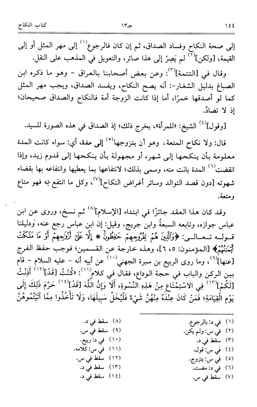 وقد كان هذا العقد جائزاً في ابتداء [الإسلام] ثم نسخ، وروى عن ابن عباس جوازه، وتابعه السبعةُ وابن جريج، وقيل: إن ابن عباس رجع عنه، ودليلنا قوله تعالى: {وَالَّذِينَ هُمْ لِفُرُوجِهِمْ حَافِظُونَ* إِلاَّ عَلَى أَزْوَاجِهِمْ أوْ مَا مَلَكَتْ أَيْمَانُهُمْ} [المؤمنون: 5، 6]، وهذه خارجة عن القسمين؛ فوجب حفظ الفرج [عنها]، وما روى الربيع بن سبرة الجهني عن أبيه أنه- عليه السلام- قام بين الركن والباب في حجة الوداع، فقال في كلام: "كُنْتُ [قَدْ] أَذِنْتُ [لَكُمْ] فِي الاسْتِمْتَاعِ مِنْ هَذِهِ النِّسْوةِ، أَلَا وَإِنَّ اللهَ [قَدْ] حَرَّمَ ذَلِكّ إِلَى يَوْم الْقِيَامَةِ؛ فَمَنْ كَانَ عِنْدَهُ مِنْهُنَّ شَيْءٌ فَلْيُخَلِّ سَبِيلَهَا، وَلَا تَاخُذُوا مِمَّا آتيْتُمُوهُنَّ