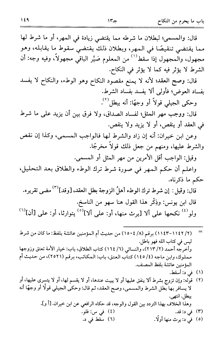 قال: وقيل: إن شرط ترك الوطء أهلُ الزوجة بطل العقد، [وقد] مضى تقريره.