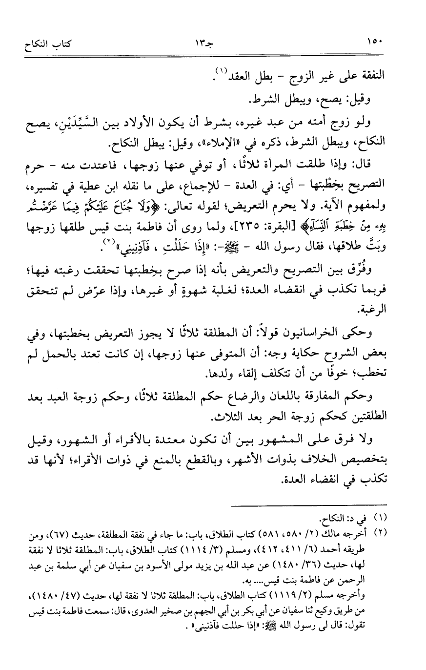 ولا فرق على المشهور بين أن تكون معتدة بالأقراء أو الشهور، وقيل بتخصيص الخلاف بذوات الأشهر، وبالقطع بالمنع في ذوات الأقراء؛ لأنها قد تكذب في انقضاء العدة.
