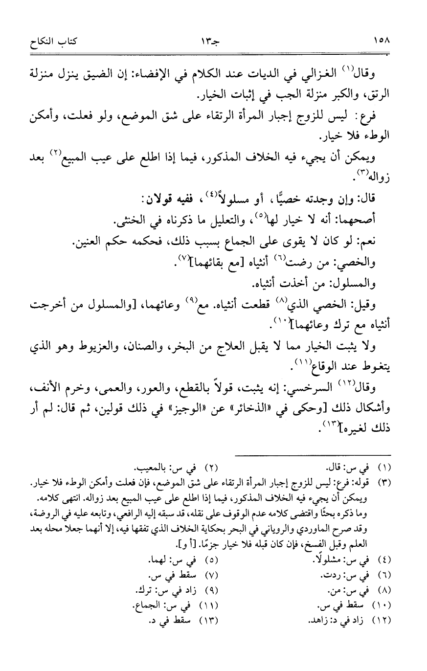 وقال الغزالي في الديات عند الكلام في الإفضاء: إن الضيق ينزل منزلة الرتق، والكبر منزلة الجب في إثبات الخيار.