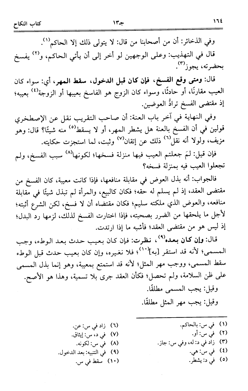 وفي النهاية في آخر باب العنة: أن صاحب التقريب نقل عن الإصطخري قولين في أن الفسخ بالعنة هل يشطر المهر، أو لا يسقط منه شيئاً؟ قال: وهو مزيف، ولولا أنه نقل ذلك عن إتقان وثبت، لما استجزت حكايته.