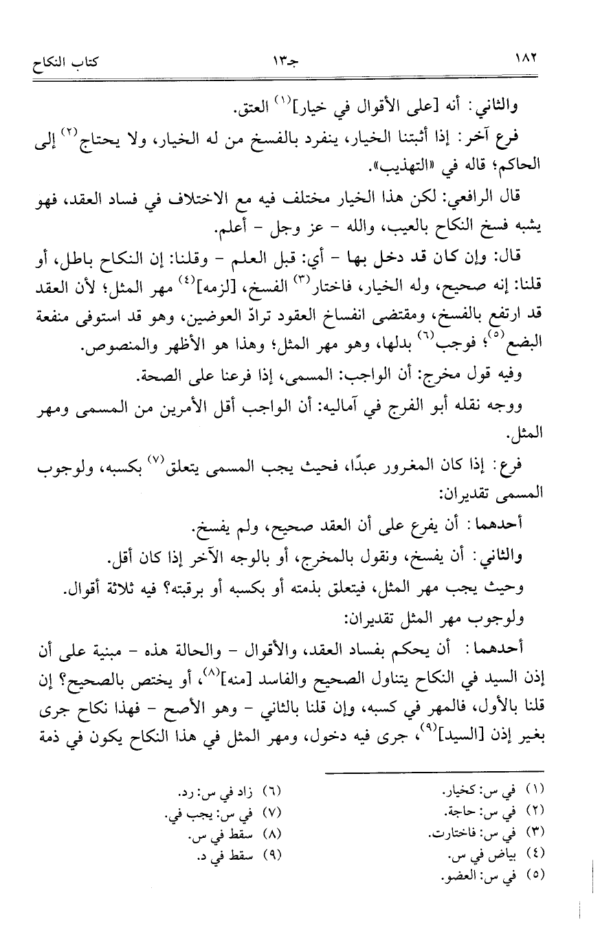 قال الرافعي: لكن هذا الخيار مختلف فيه مع الاختلاف في فساد العقد، فهو يشبه فسخ النكاح بالعيب، والله- عز وجل- أعلم.