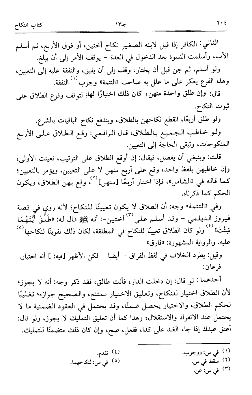 الثاني: الكافر إذا قبل لابنه الصغير نكاح أختين، أو فوق الأربع، ثم أسلم الأب، وأسلمت النسوة بعد الدخول في العدة- يوقف الأمر إلى أن يبلغ.