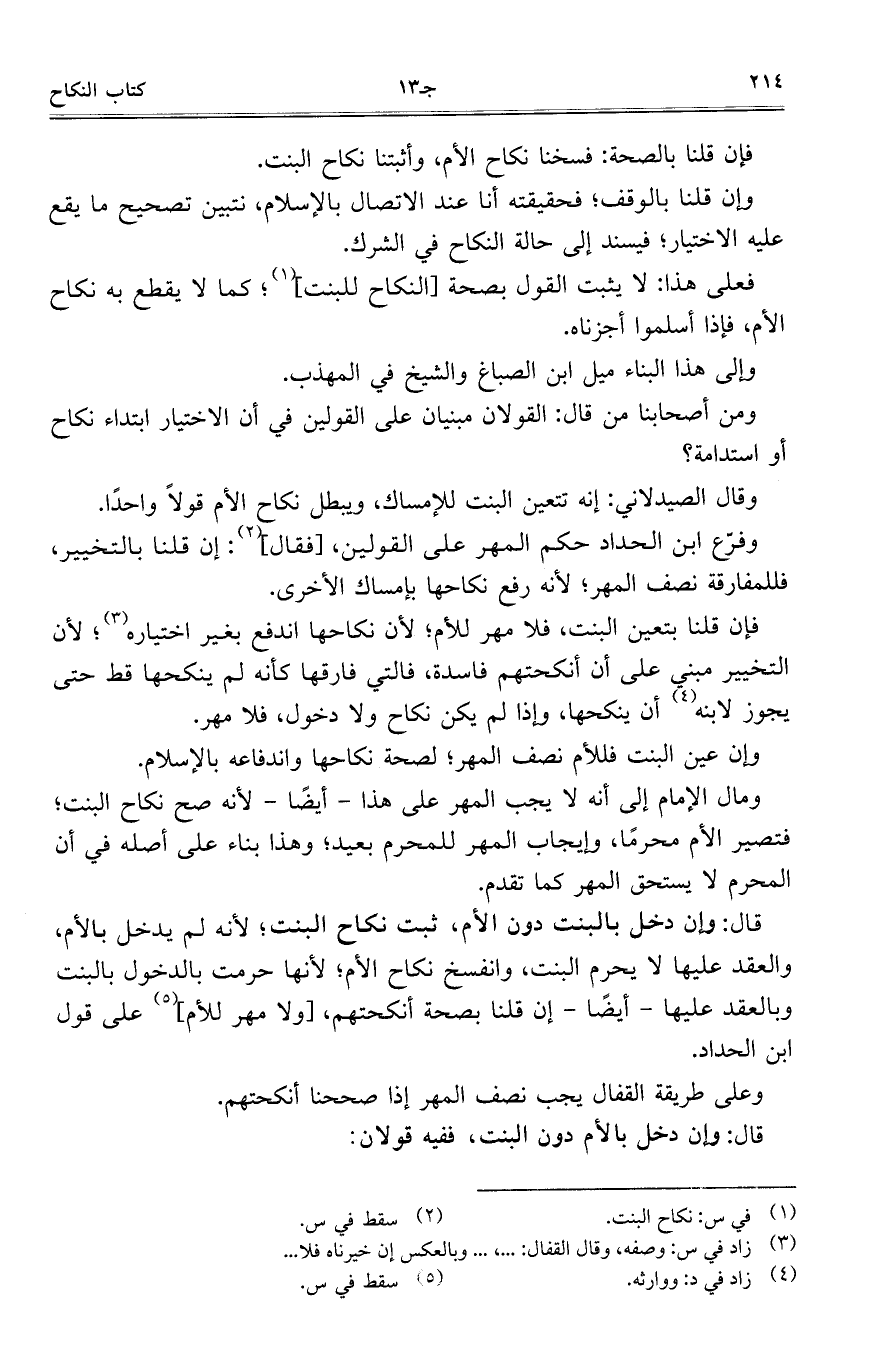 ومال الإمام إلى أنه لا يجب المهر على هذا- أيضاً- لأنه صح نكاح البنت؛ فتصير الأم محرماً، وإيجاب المهر للمحرم بعيد؛ وهذا بناءً على أصله في أن المحرم لا يستحق المهر كما تقدم.